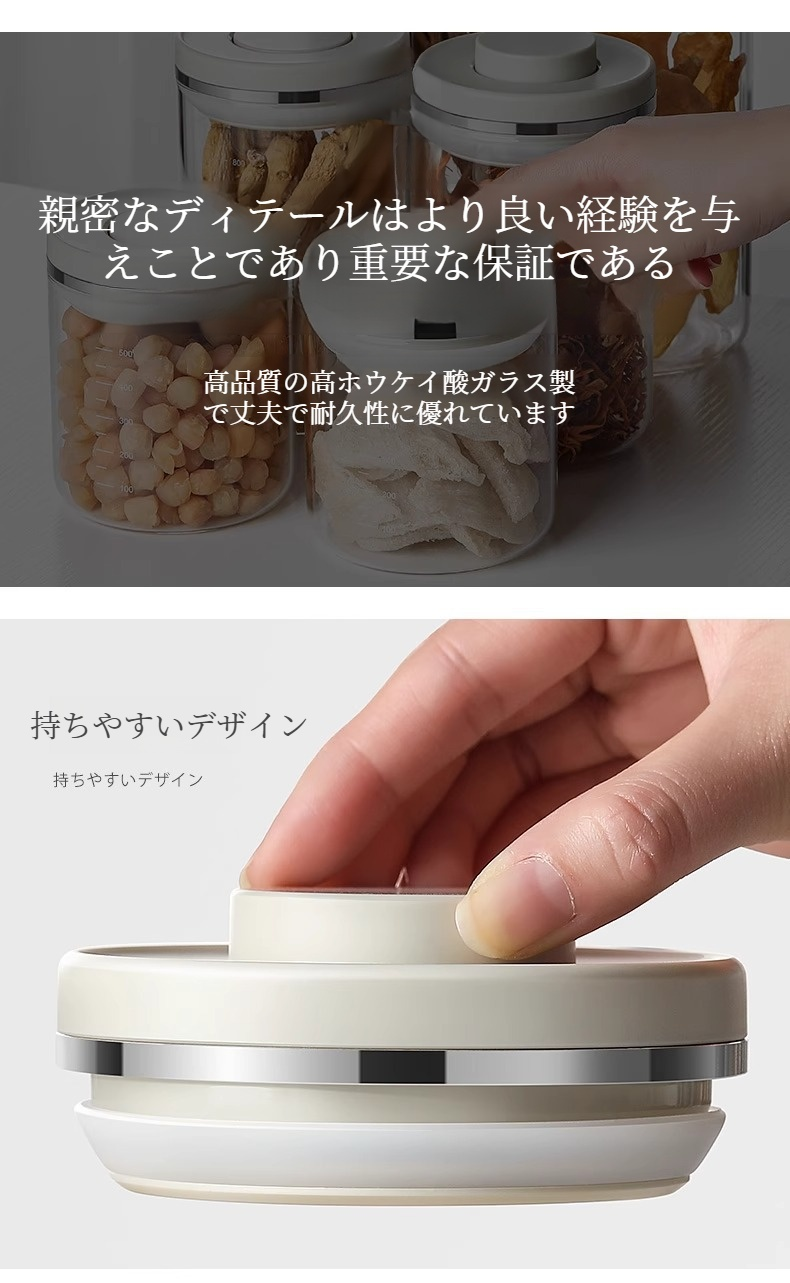 プッシュ式密封機能を強調したLISSA保存瓶の詳細