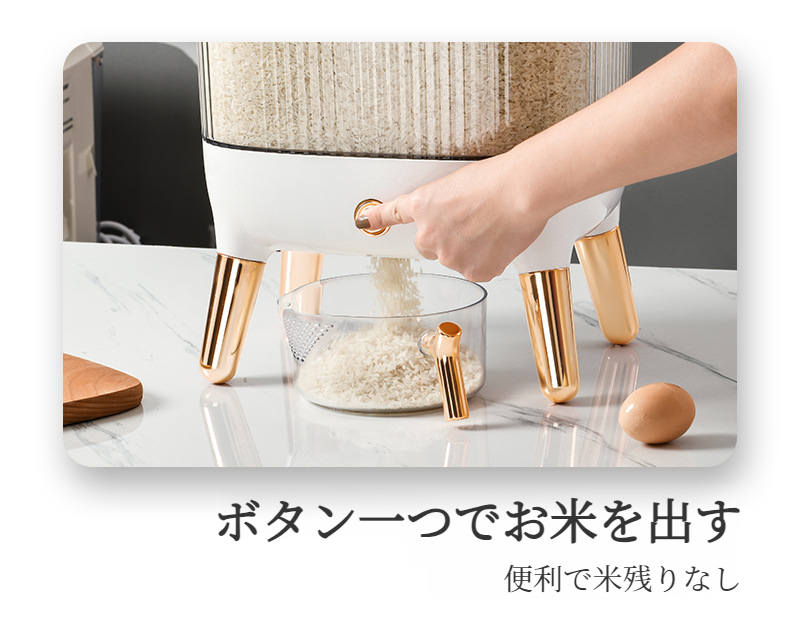 おしゃれな金色の取っ手付き米びつ