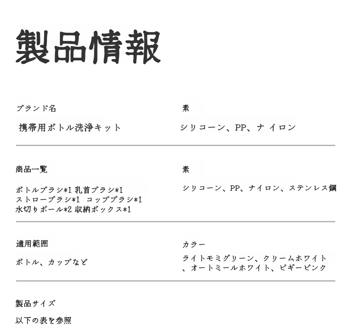 携帯用シリコーンびんブラシセット全体画像